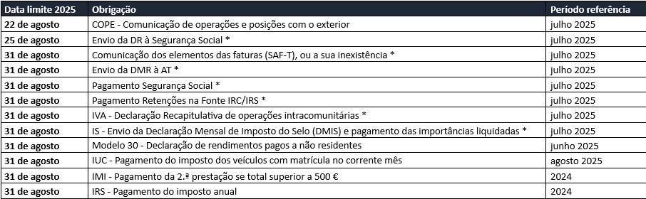 Informação geral sobre agendas e informações fiscais, links úteis e outra informação temática relevante para seu conhecimento.
